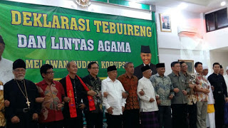 Mereka datang untuk mendeklarasikan perlawanan pada budaya korupsi. Istimewanya, acara ini dihadiri Ketua KPK Agus Raharjo. Sebelum menggelar deklarasi, Agus didampingi pengasuh pondok pesantren Tebuireng KH Salahudin Wahid atau Gus Solah bersama para pemuka agama berziarah ke makam keluarga besar Tebuireng diantaranya makam pendiri Nahdlatul Ulama (NU) KH Hasyim Asy’ari, mantan Menteri Agama pertama RI KH Wahid Hasyim, dan mantan Presiden keempat RI KH Abdurrahman Wahid atau Gus Dur.