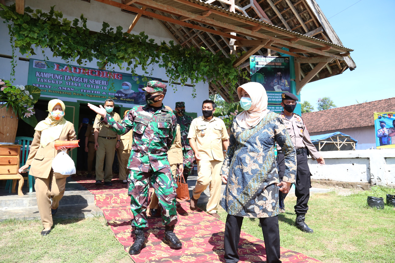 Bupati Kediri Haryanti Sutrisno dan Dandim 0809/Kediri Letkol (Kav) Dwi Agung Sutrisno meninjau Kampung Tangguh Desa Kunjang, Kec. Ngancar, Senin, 22 Juni 2020. Foto: Dinas Kominfo Kab. Kediri