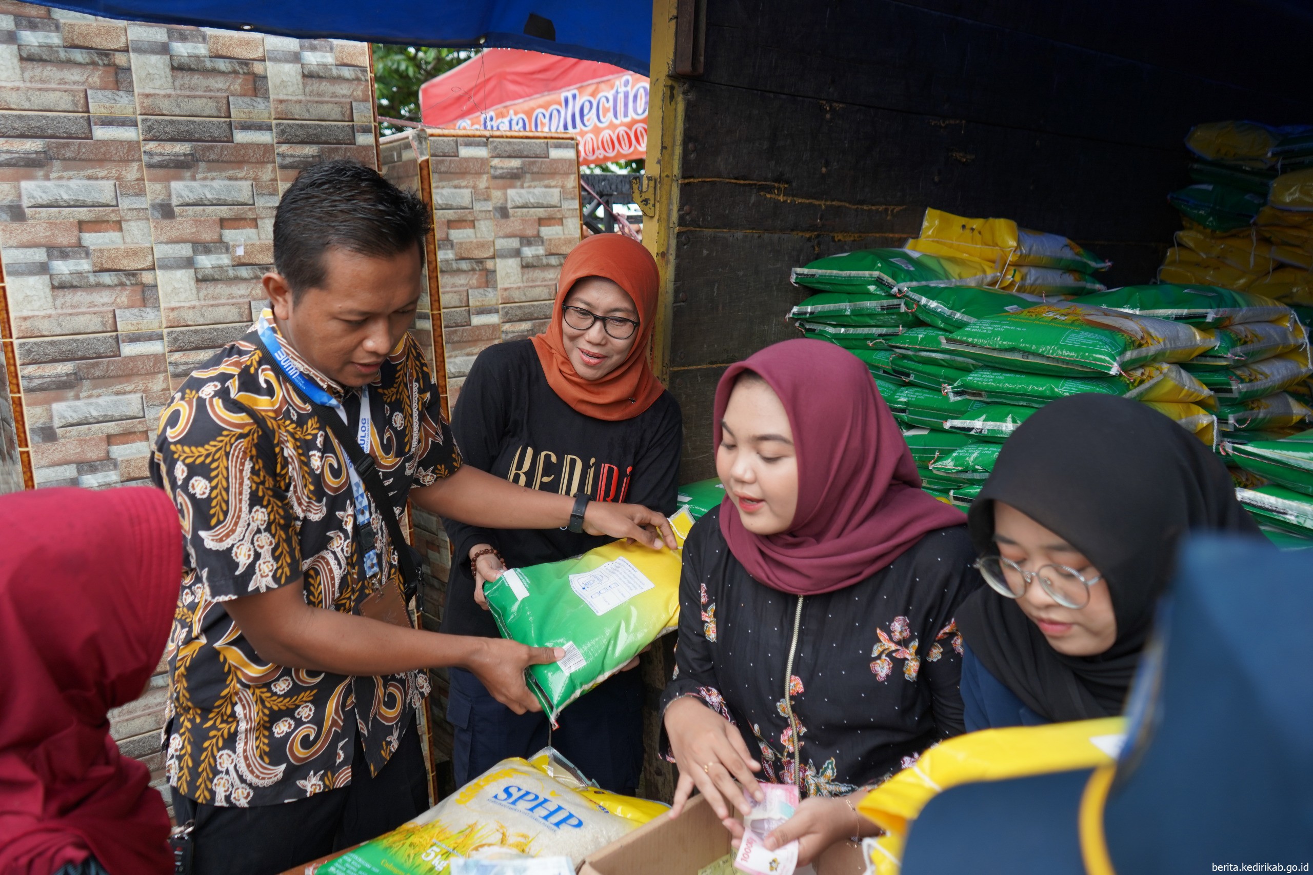 Pemkab selalu hadir untuk pemenuhan kebutuhan dan ketersediaan maupun stabilisasi harga murah, dalam gerakan pangan murah kali ini DKPP Kabupaten Kediri bersama bulog menyediakan beras jenis medium dengan merek SPHP dengan harga Rp52.000 per 5 kg jadi hanya Rp10.400 per kg.