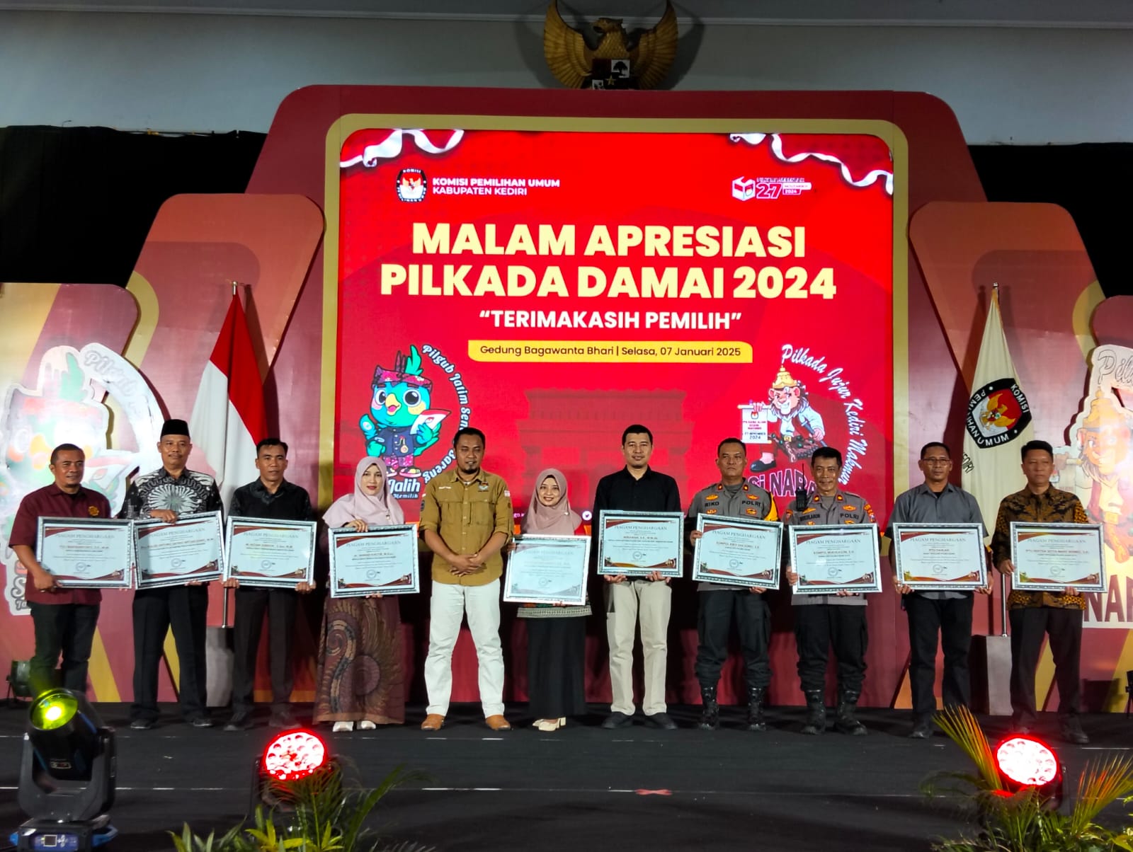 IDEALOKA.COM (Kediri) – Komisi Pemilihan Umum (KPU) Kabupaten Kediri menggelar acara Malam Apresiasi Pilkada Damai 2024 bertajuk “Terima Kasih Pemilih” pada Selasa malam, 7 Januari 2025.