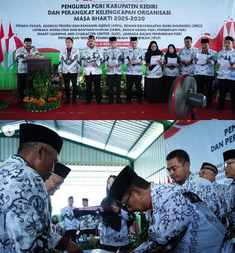 Ajakan tersebut disampaikan Bupati Kediri Hanindhito Himawan Pramana melalui Wakil Bupati Dewi Mariya Ulfa dalam acara Pelantikan Pengurus dan Perangkat Kelengkapan Organisasi PGRI Kabupaten Kediri Masa Bhakti 2025-2030 di Aula Kebun Blimbing, Desa Turus, Kecamatan Gurah, Rabu, 12 November 2025.