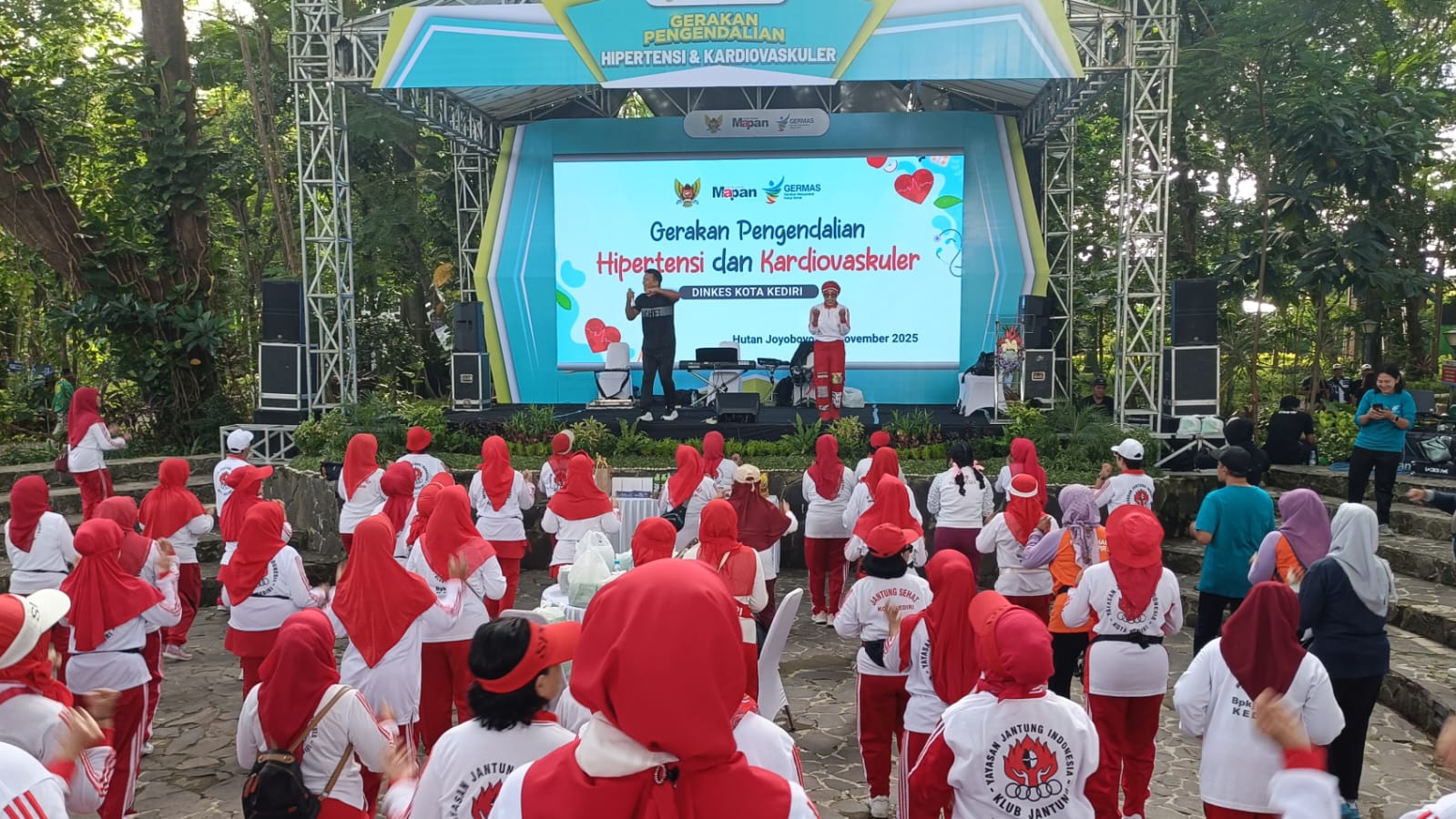 IDEALOKA.COM (Kediri) – Warga Kota Kediri tampak antusias mengikuti gerakan pengendalian hipertensi dan penyakit kardiovaskular yang diselenggarakan Dinas Kesehatan Kota Kediri di Taman Joyoboyo, Jumat pagi, 28 November 2025. Kegiatan ini menjadi upaya menekan angka kasus hipertensi yang masih menjadi ancaman kesehatan masyarakat.