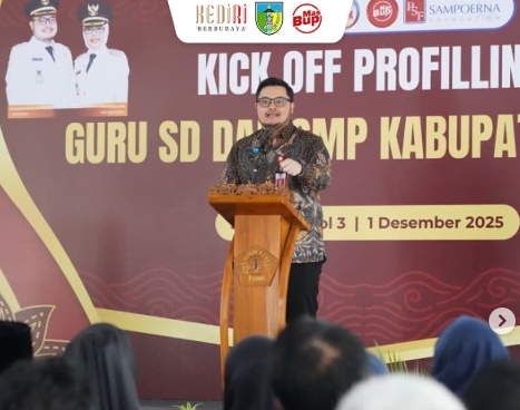 “Kita melakukan profiling kepada 7.200 guru, baik negeri maupun swasta,” kata bupati yang akrab disapa Mas Dhito ini dalam acara pembukaan profiling guru yang berlokasi di SMP Negeri 3 Grogol, Senin, 1 Desember 2025.