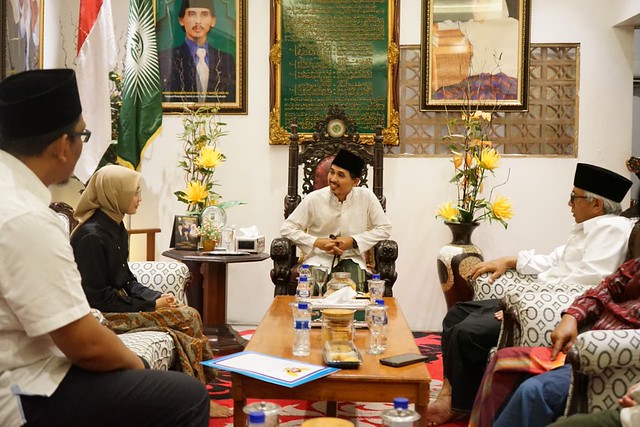 Wali Kota Kediri Vinanda Prameswati dan Wakil Wali Kota Qowimuddin bersilaturahmi ke Pondok Pesantren Kedunglo Kediri dan disambut Pengasuh Perjuangan Wahidiyah dan Pondok Pesantren Kedunglo KH. Agus Abdul Madjid Ali Fikri, Kamis, 8 Januari 2026. Foto: Pemkot Kediri