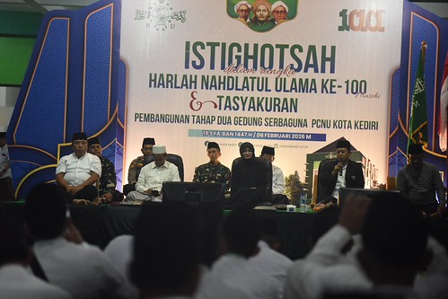 Wali Kota Kediri Vinanda Prameswati menghadiri Istighotsah dalam rangka Harlah Nahdlatul Ulama ke-100 dan Tasyakuran Pembangunan Tahap 2 Gedung Serbaguna PCNU Kota Kediri, Jumat, 6 Februari 2026. Kegiatan diawali istigasah dipimpin Rais Syuriyah PCNU KH.Abdul Hamid.