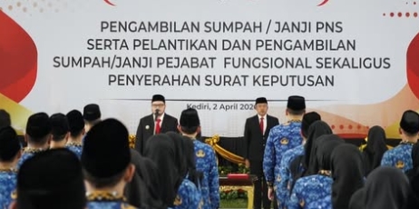 Bupati Kediri Hanindhito Himawan Pramana melantik dan memimpin pengambilan sumpah/janji 156 Pegawai Negeri Sipil (PNS) di lingkungan Pemerintah Kabupaten Kediri, Kamis, 2 April 2026.